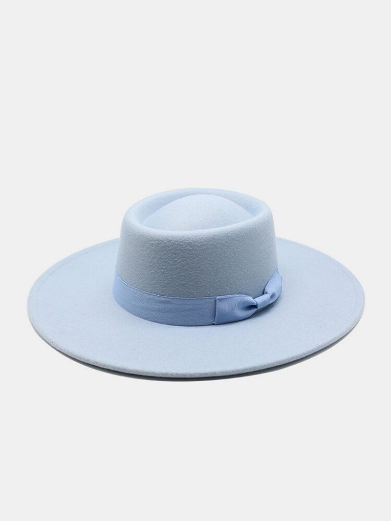 Uniszex Gyapjú Filc Egyszínű Kötés Masni Díszítéssel Homorú Felső Fedora Sapka