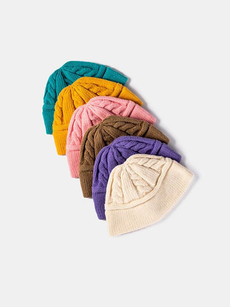 Uniszex Kötött Egyszínű Twist Jacquard Karima Nélküli Kültéri Meleg Sapka