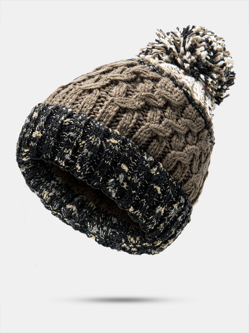 Uniszex Vegyes Színű Kötött Plusz Bársony Vastagított Csavarmintás Szőrme Golyó Dekoráció Karimás Meleg Sapka