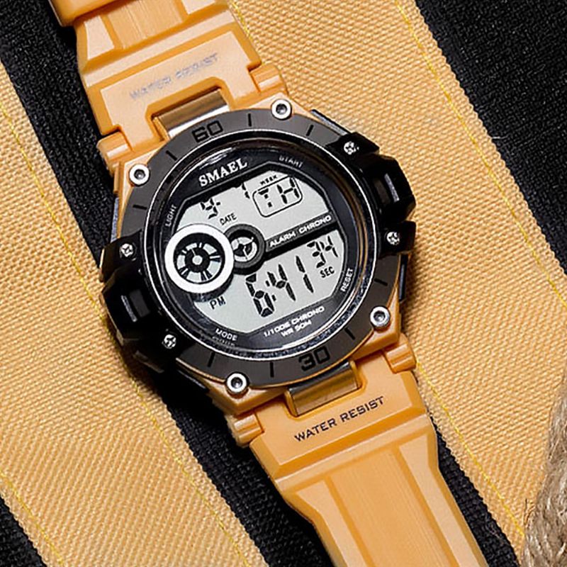 Ütésálló Férfi Sportóra Gyanta Szíjjal Digitális Vízálló Óra Kültéri Használatra
