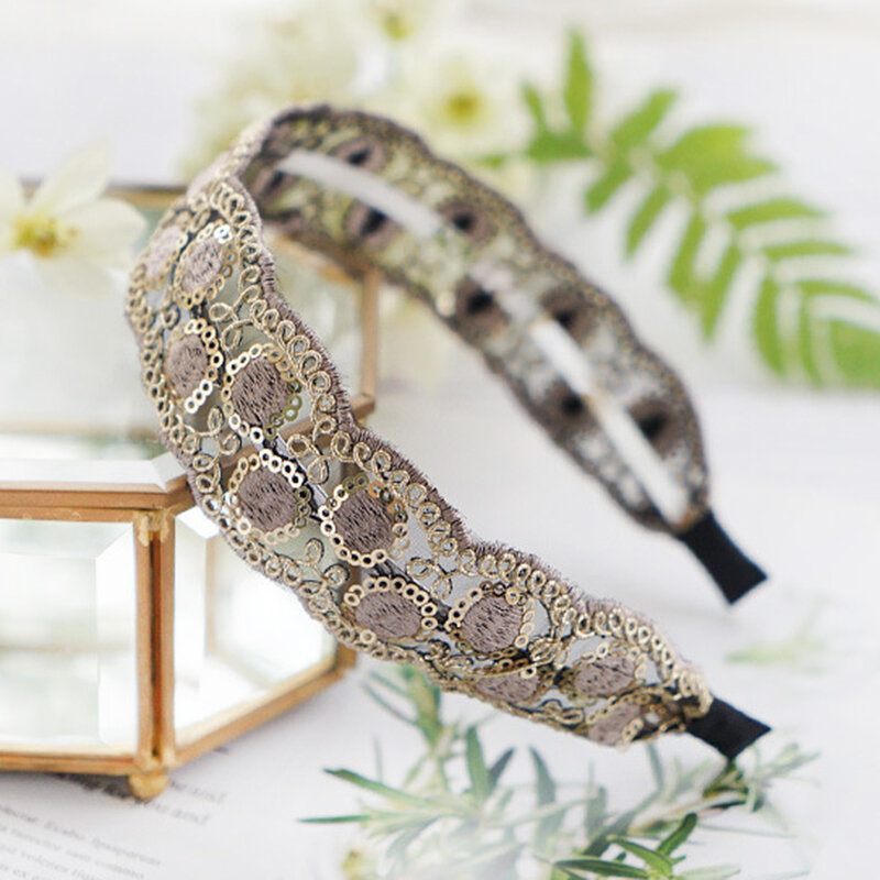 Vintage Csipke Hajpánt Bohém Geometrikus Gyémánt Flitterekkel Hímzett Szövet Fejpánt