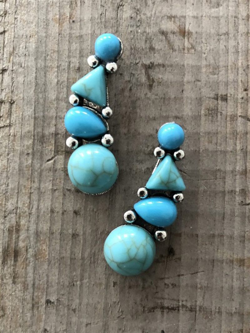 Vintage Geometrikus Formájú Türkiz Patchwork Ötvözet Fülbevaló