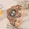 Vintage Geometrikus Nagy Virágos Korongos Karkötő Óra Personality Strasszkő Kvarc Karóra