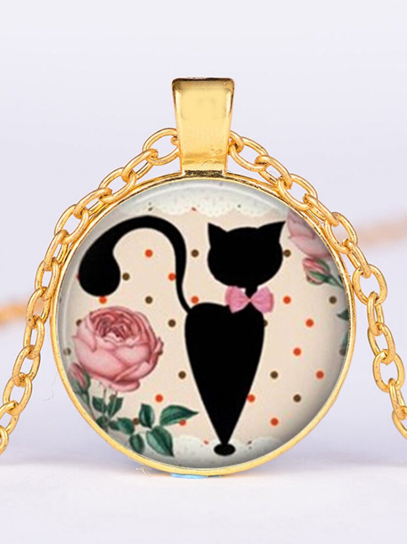 Vintage Geometrikus Üvegnyomott Női Nyaklánc Aranyos Rajzfilm Macska Pulóver Lánc Kulcscsont