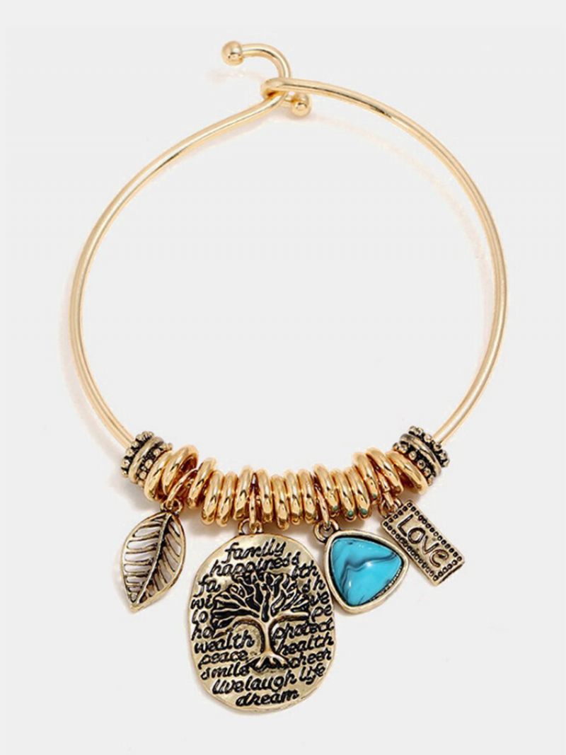 Vintage Lógó Karkötő Levél Ovális Fa Növény Kék Türkiz Varázslatos Karkötők Etnikai Ékszerek Nőknek