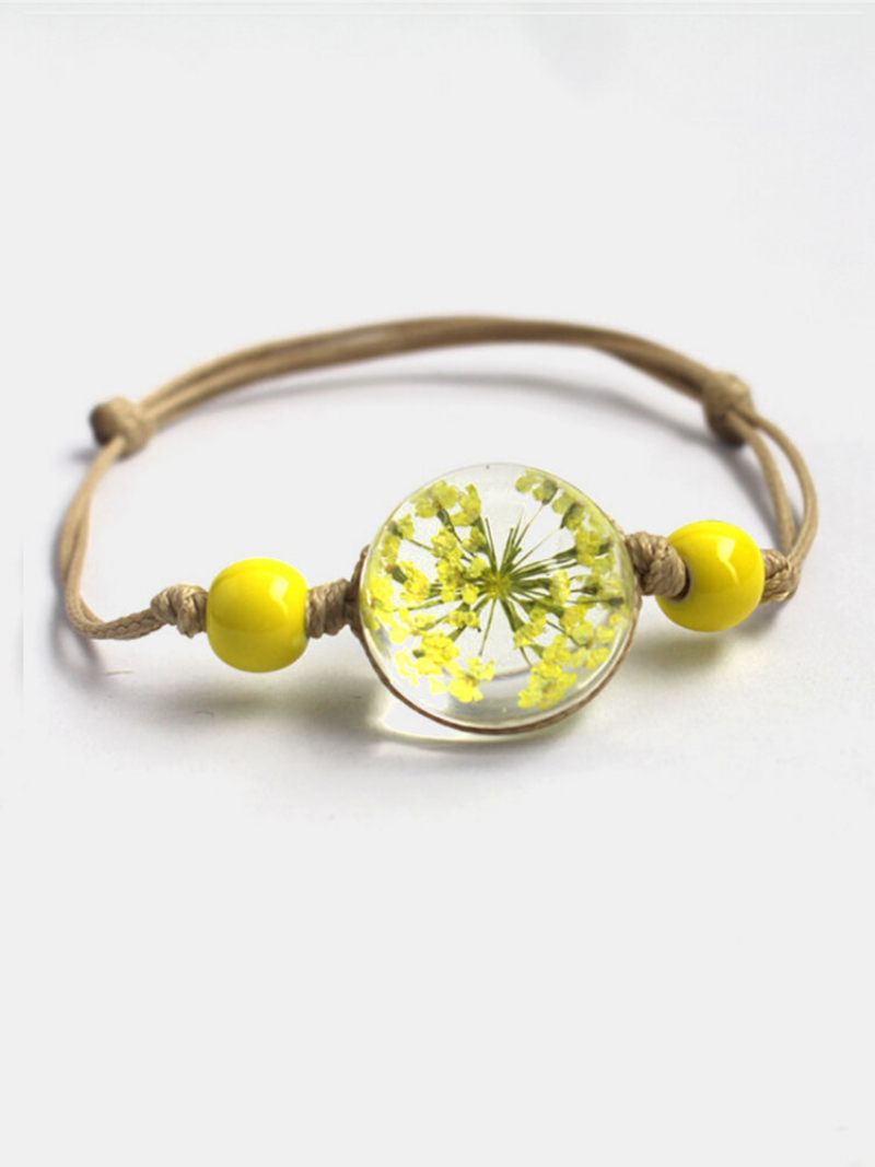 Vintage Mandzsetta Karkötők Babysbreath Sakura Száraz Virág Üveg Viasz Kötél Etnikai Ékszerek Nőknek