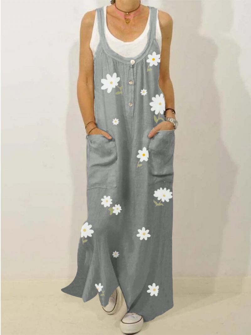 Virágmintás Pántok Bő Vintage Maxi Ruha Nőknek